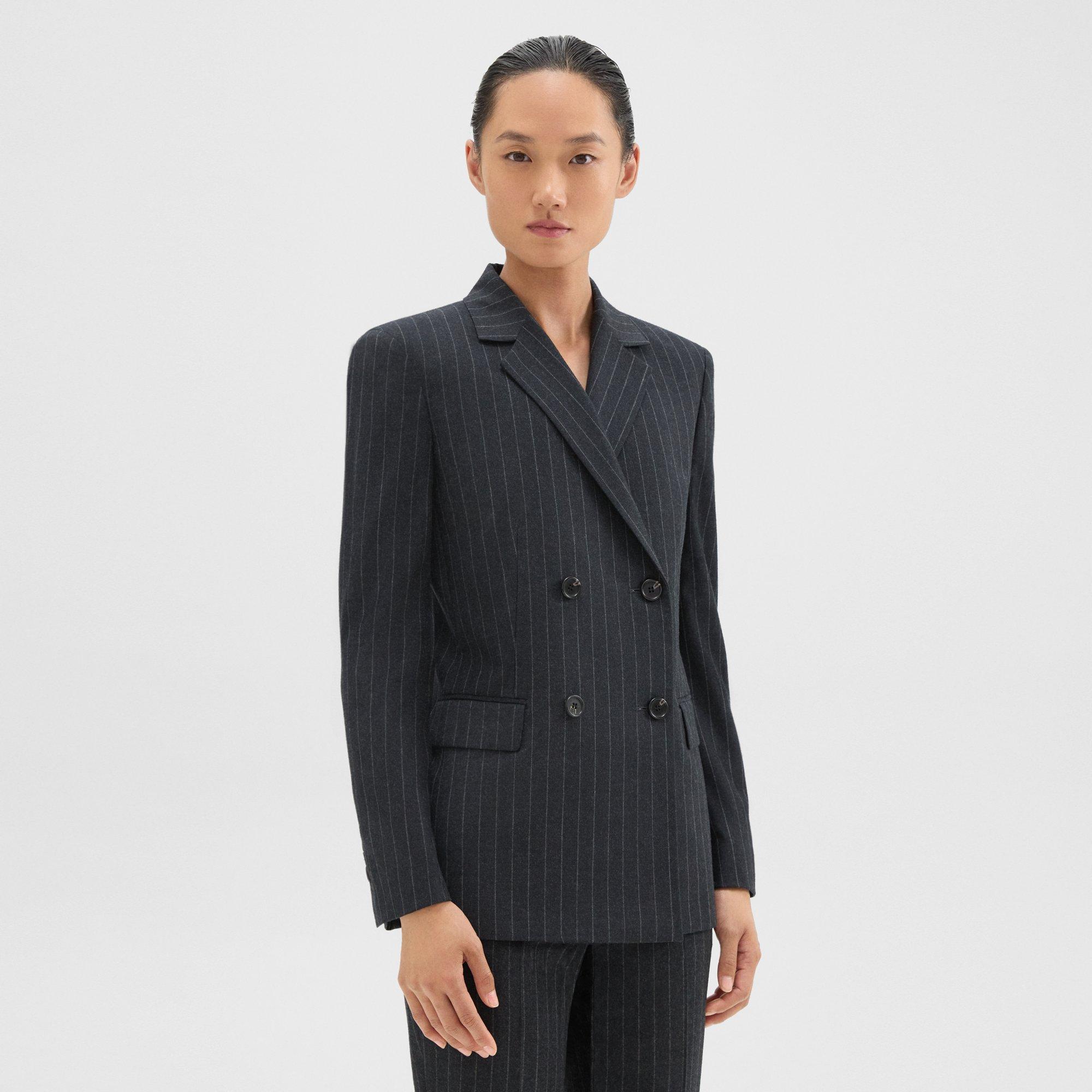 Pinstripe Wool Flannel Double Breasted Slim Blazer Theory Outlet Very well made.