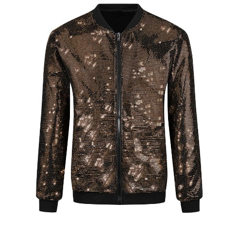 Lars Amadeus Men s Zip Up Long Sleeves Disco Sparkle Sequin Bomber Jacket Golden Xx Large Target Very well made.