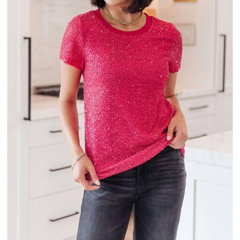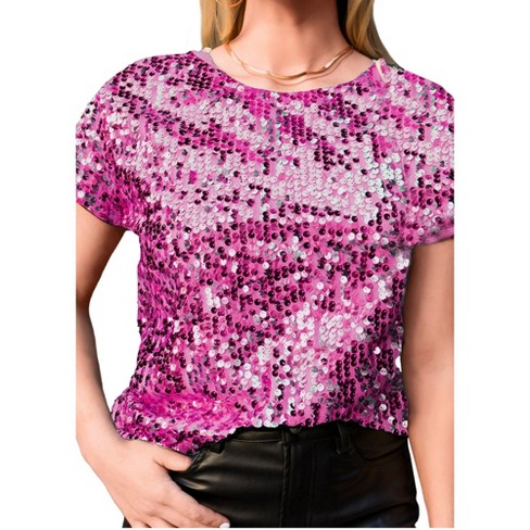 Anna kaci Glitter Sequin Tops Short Sleeve Sparkly Binding Shirt Blouse Large Pink Target Very well made.