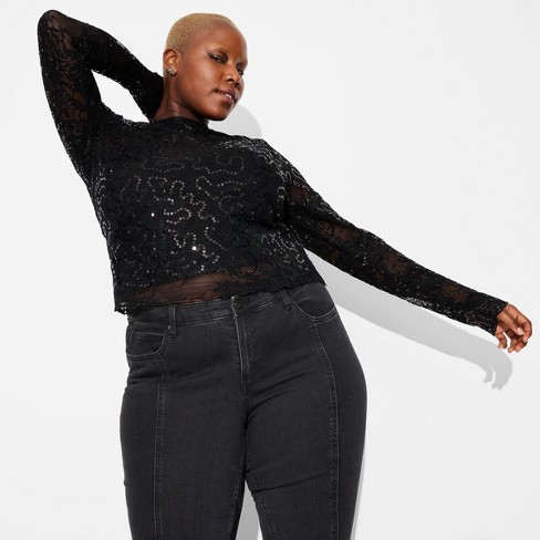 Women s Long Sleeve Lace Sequin Top Wild Fable Black 1x Target Very well made.