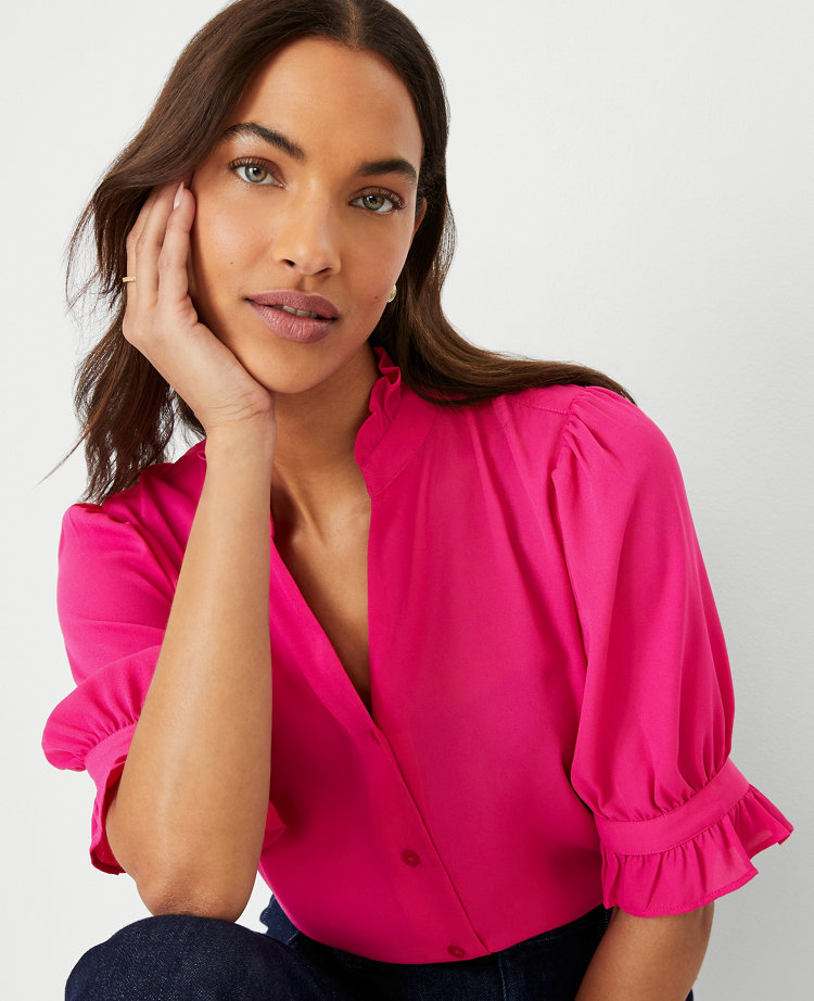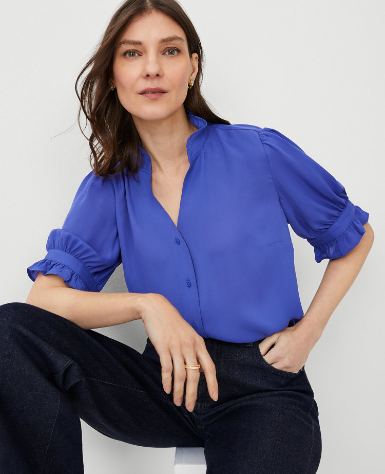 Ann Taylor Ruffle Trim Top ShopStyle Very well made.