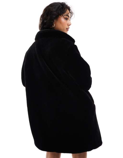 Bershka soft faux fur longline coat in black Very well made.