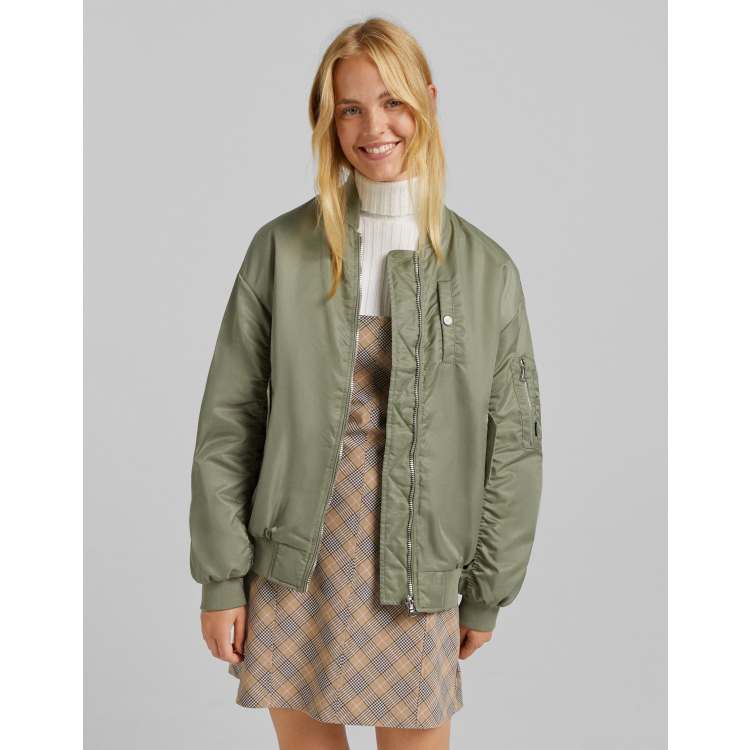 Bershka nylon bomber jacket in khaki Very well made.
