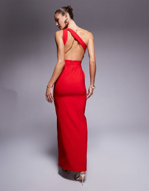 Vesper asymmetric backless maxi dress with thigh split in red ASOS Very well made.