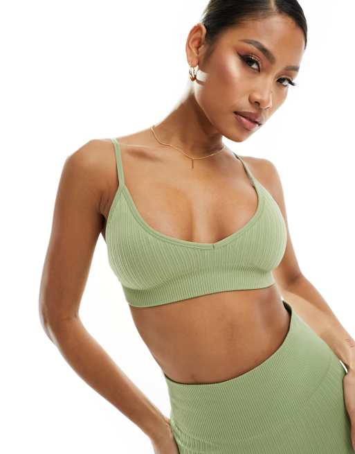 ASOS 4505 Brassiere de sport cotelee sans coutures maintien leger avec rembourrage amovible Pistache ASOS Very well made.