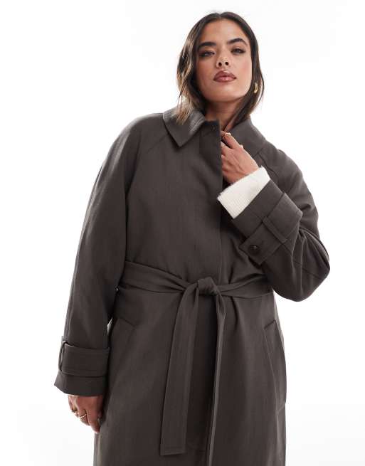 ASOS DESIGN Curve Eleganter Longline Trenchcoat in Pilzbraun mit Oberkragen Very well made.