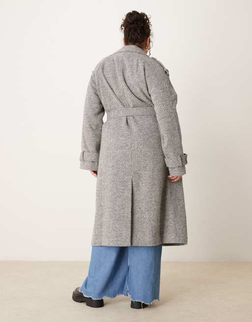 ASOS DESIGN Curve Eleganter Trenchcoat aus Kunstwolle in Salz und Pfeffer Very well made.
