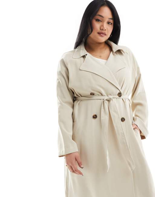 ASOS DESIGN Curve Weicher Midi Trenchcoat in Stein ASOS Very well made.
