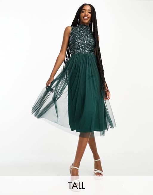Maya Tall Bridesmaid Hochgeschlossenes Midikleid in Smaragdgrun mit Paillettenbesatz Fenua environnementShops Very well made.