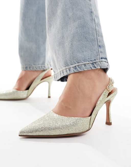 ASOS DESIGN Wide Fit Samber 2 Hohe glitzernde Schuhe in Gold mit Stilettoabsatz und Fersenriemen weite Passform Very well made.