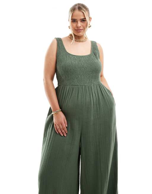 ASOS DESIGN Curve Jumpsuit in Khaki mit U Ausschnitt und weitem Bein ASOS Very well made.