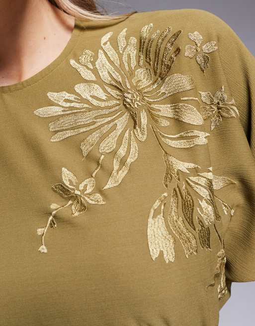 ASOS DESIGN floral embroidered batwing bias maxi dress in olive green Very well made.