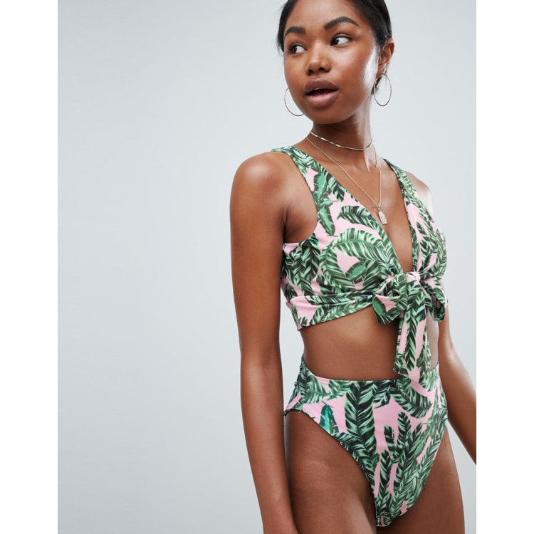 PrettyLittleThing Palm Print Tie Front Bikini ASOS Very well made.
