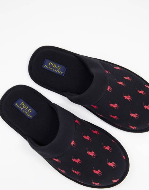 Ralph Lauren Kollin Slipper in Schwarz mit mehrfarbigem Logo Very well made.