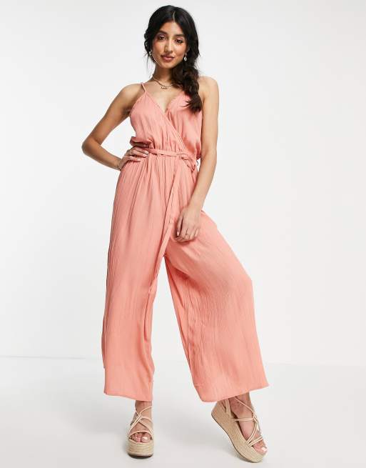 ASOS DESIGN Camisole Jumpsuit im Culotte Design mit Wickeldetail vorn und Volant Besatz in Rostrot ASOS Very well made.