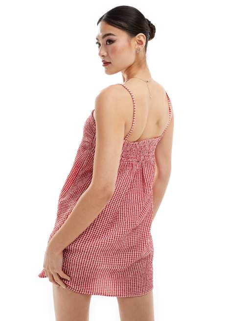 Monki Midi Hangerkleid aus Seersucker mit Vichy Karos in Blau und WeiB ASOS Very well made.