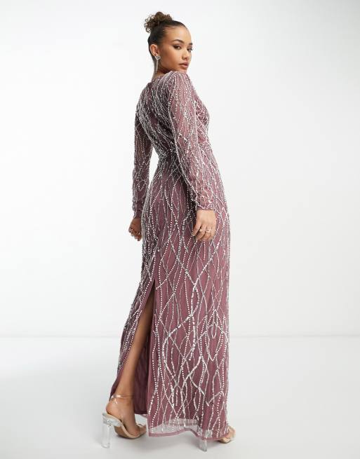 ASOS DESIGN embellished pleat maxi bridesmaid dress Pink Taupe Very well made.