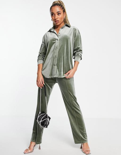 ASOS DESIGN velvet pyjama suit track pants in khaki Very well made.