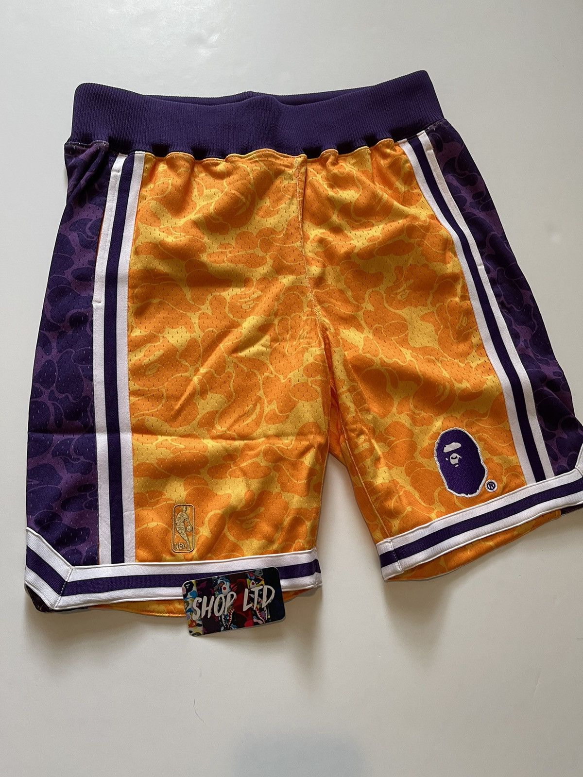 BAPE X MITCHELL NESS LOS ANGELES LAKERS JERSEY SHORTS Men s Fashion Bottoms Shorts on Carousell Very well made.