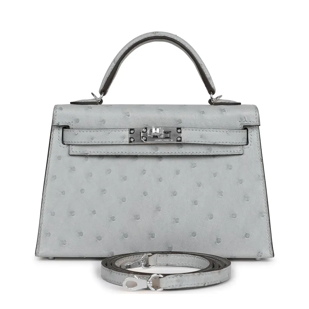 Hermes Mini Kelly Bleu Glacier Ostrich GHW 2023 Bagista Very well made.