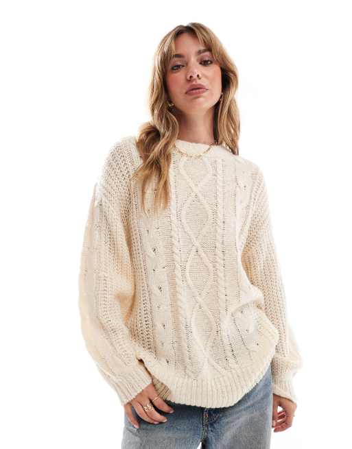 Brave Soul oversized cable knit jumper in oatmeal Very well made.