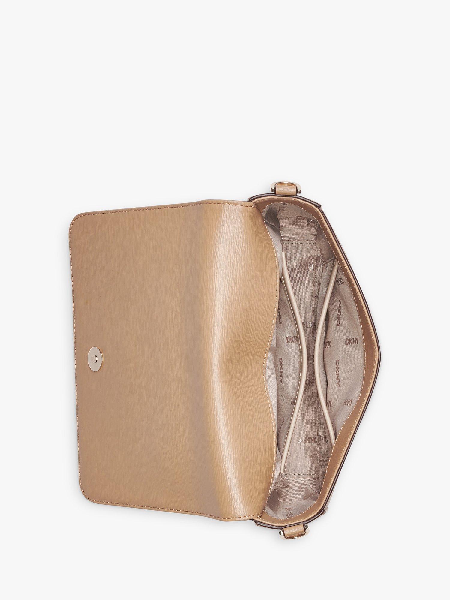 DKNY Bryant Avenue Logo Flap Faux Leather Crossbody Bag Chino Cappuccino Very well made.
