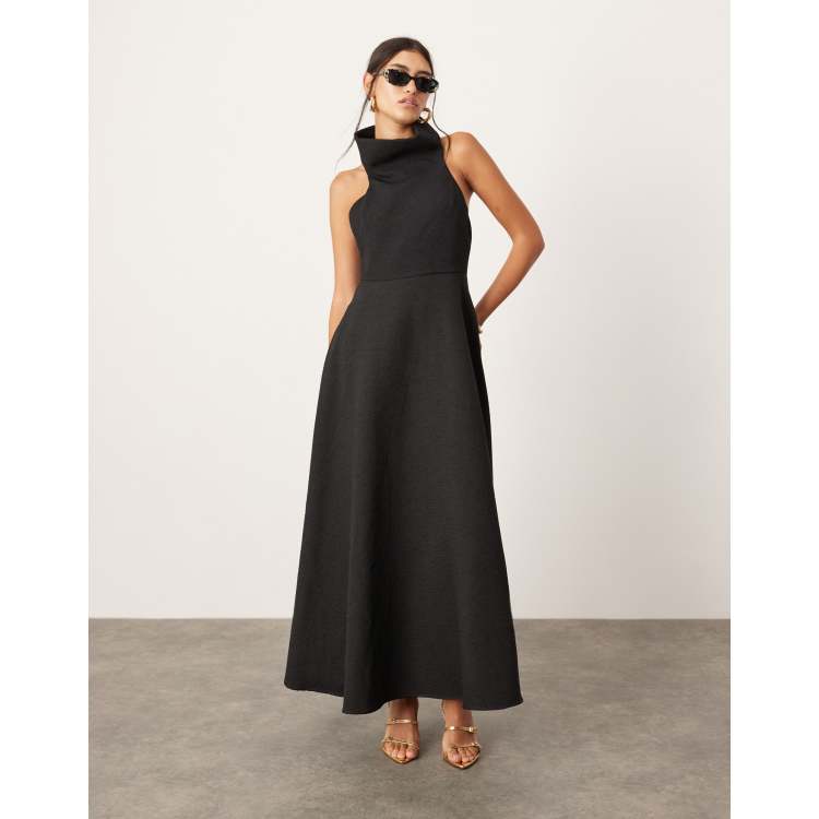 ClassicfuncenterShops EDITION Vestito lungo svasato nero allacciato al collo testurizzato con scollo oversize ClassicfuncenterShops Very well made.