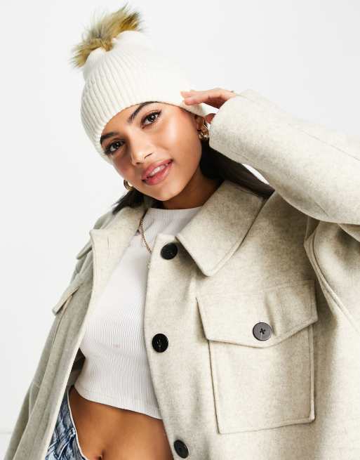 Accessorize pom beanie hat in winter white WHITE Very well made.