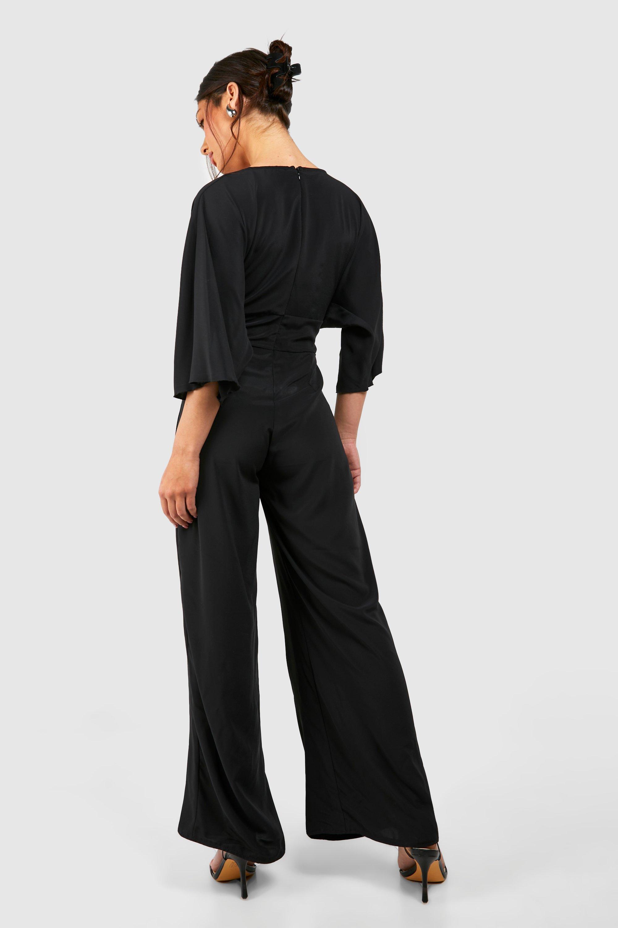 Petite Satin Jumpsuit mit weitem Bein und weiten Armeln boohoo DE Very well made.
