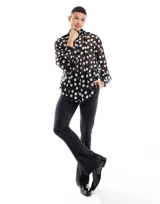 ASOS DESIGN Camicia comoda nera trasparente con laccetti sul collo e stampa a pois grandi ASOS Very well made.