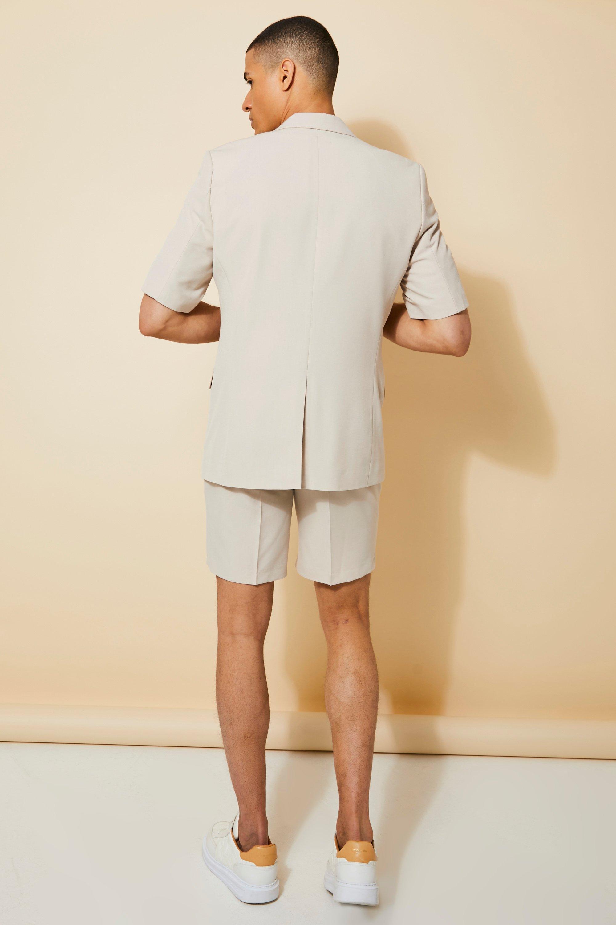 BEIGE SLIM SHORT SLEEVE SUIT JACKET AND SHORT TROUSERS Very well made.